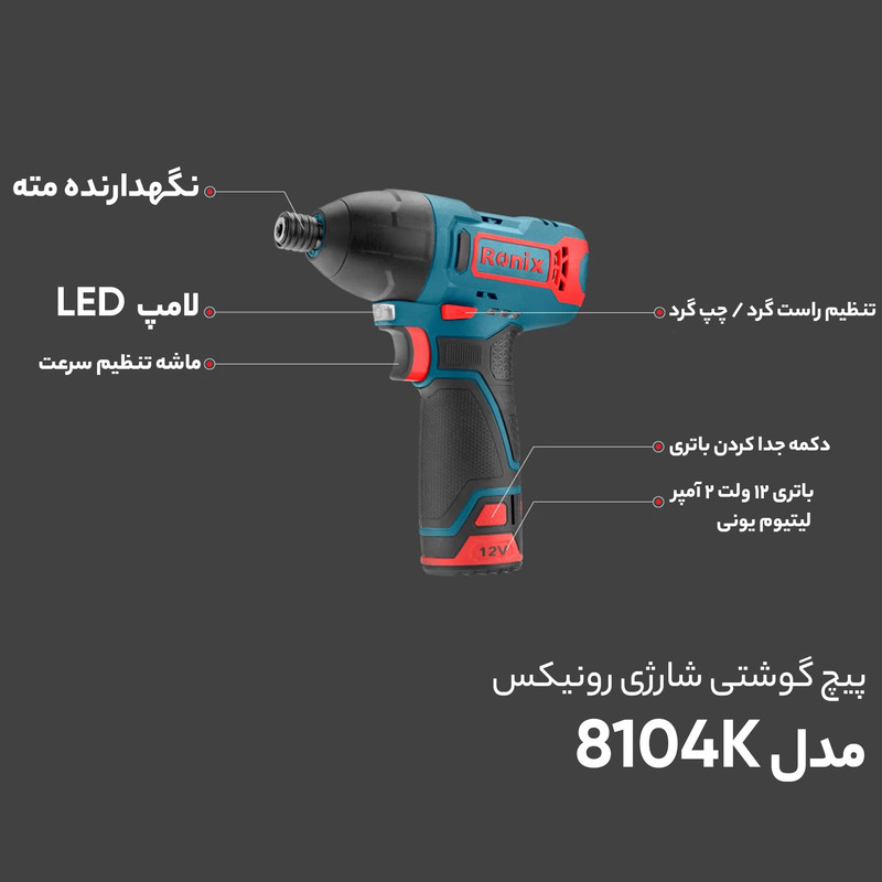 پیچ گوشتی شارژی رونیکس مدل 8104K