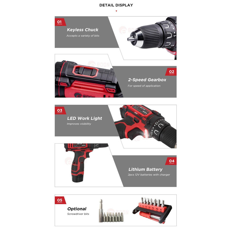 دریل پیچ گوشتی شارژی ادون مدل AD-12A LITHIUM
