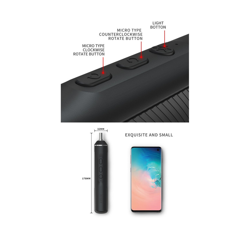کابل شارژ USB (Type-C یا Micro-USB), دفترچه راهنما, چراغ LED و 20 سری پیچ گوشتی و 1 پیچ گوشتی شارژی