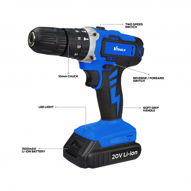 دریل شارژی چکشی 10 میلیمتری 300 وات وی تولز مدل 20V