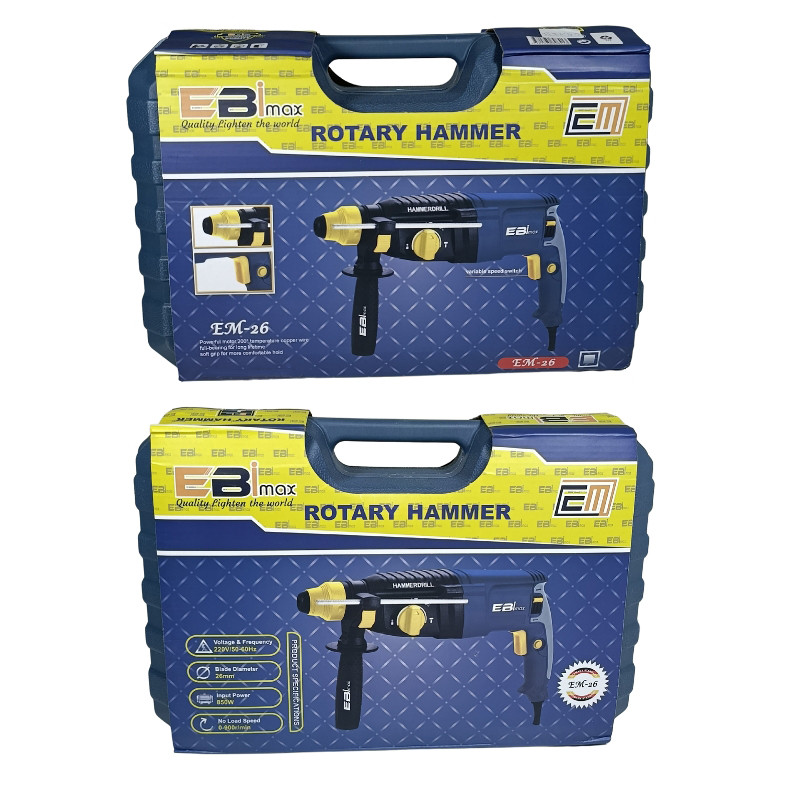 دریل چکشی بتنکن 3 کاره ابی مکس مدل EM-26 ، قدرت ، دوام و راحتی در یک ابزار حرفهای با موتور قدرتمند 850 وات ، طراحی شده تا در شرایط سخت کاری عملکردی مطمئن ارائه دهد . این دستگاه با قابلیت سوراخکاری چکشی ، تخریب سبک و حفاری در بتن ، سنگ و مصالح ساختمانی ، انتخابی مناسب برای کارگاههای حرفهای و پروژههای خانگیست .