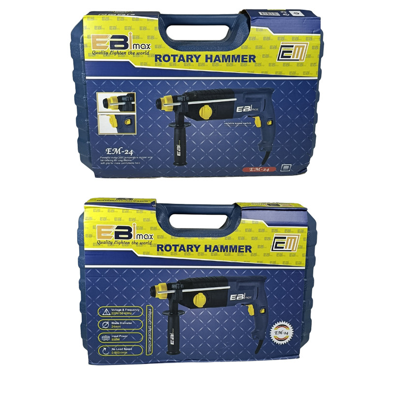 دریل چکشی بتنکن سهحالته ابی مکس مدل EM-24 ابزاری تخصصی و قدرتمند برای انجام عملیات تخریب سبک و سوراخکاری در سطوح سخت مانند بتن ، سنگ، آجر و چوب است . این دستگاه با طراحی ارگونومیک ، مقاومت بالایی در برابر ضربه و حرارت دارد و برای استفادهی طولانیمدت در پروژههای ساختمانی و صنعتی انتخابی مناسب محسوب میشود . موتور این مدل با توان 800 وات و ولتاژ 220 ولت ، در فرکانس 50 تا 60 هرتز فعالیت میکند و قابلیت تنظیم سرعت از صفر تا 900 دور در دقیقه را دارد . سیستم ضربهزن آن با توان 3 ژول و نرخ ضربهی حداکثر 4000 ضربه در دقیقه ، عملکردی مؤثر در تخریب و نفوذ به سطوح متراکم ارائه میدهد . ابزارگیر چهارشیار SDS Plus با مکانیزم قفل خودکار ، امکان تعویض سریع و ایمن متهها را فراهم کرده و ظرفیت سوراخکاری در بتن تا 26 میلیمتر ، در چوب تا 30 میلیمتر و در فلزات تا 13 میلیمتر را پوشش میدهد . دستگاه مجهز به گیربکس صنعتی سبکوزن و مستحکم است که در کنار مکانیزم ضربهی پیشرفته شامل شاتون، پیستون و سیلندر، عملکردی روان و قدرتمند را تضمین میکند . کلیدهای ضد غبار با ظرفیت جریانی بالا ، امکان کنترل دقیق عملکرد را فراهم کردهاند و شامل کلید روشن/خاموش ، چپگرد/راستگرد ، سوئیچ تغییر حالت بین سوراخکاری معمولی ، چکشی ، تخریب و خلاصکن هستند . کلید قفلکن سرعت نیز برای استفادهی مداوم و راحت در نظر گرفته شده است . سیستم کلاچ ایمنی داخلی ، از آرمیچر و دست کاربر در برابر فشارهای ناگهانی محافظت میکند . دستهی جانبی با طراحی اختصاصی ابی مکس و روکش لاستیکی ضد لرزش ، کنترل بهتر و کاهش خستگی را در حین کار تضمین میکند . در هنگام استفاده ، رعایت نکات ایمنی مانند استفاده از عینک و دستکش ، بستن صحیح مته ، پرهیز از فشار بیشازحد ، محافظت دستگاه از رطوبت و ضربه و قطع برق پس از پایان کار ، الزامی است .