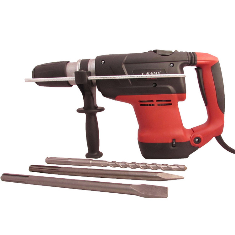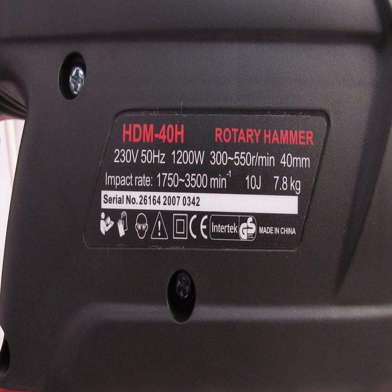 بتن کن محک مدل HDM-40H از قلم چهار شیار بهره می برد. انرژی هر ضربه توسط این بتن کن برابر با 10 ژول است. از ویژگی های این بتن کن می توان به کلید کنترل سرعت، دسته کمکی و قابلیت چپ گرد و راست گرد اشاره کرد. این دستگاه توانایی سوراخ کاری در بتن را به اندازه 40 میلی متر دارا می باشد. همچنین این دستگاه دارای طراحی ارگونومیک برای راحتی کاربر است. این مدل دریل بتن کن محک از سه حالت ضربه ای، چرخشی و ضربه ای چرخشی برخوردار است. دریل بتن کن از سری ابزارهایی است که برای حفاری و تخریب مصالح ساختمانی استفاده می شود. بتن کن دارای قابلیت چرخشی است و به وسیله پیستون خود دارای حالت ضربه ای نیز می باشد و همین نکته باعث افزایش قدرت تخریب توسط این دستگاه می شود. دریل بتن کن ها این قابلیت را دارند که در کوتاه ترین زمان سوراخ های بزرگی ایجاد کنند. کاربر باید در حین استفاده از دستگاه بتن کن نکات ایمنی را رعایت نماید. بهتر است کاربر از پریز برقی که استفاده کند که دارای فیوز باشد تا در صورت بروز مشکل برق به سرعت قطع شود و به دستگاه آسیبی نرسد. اپراتور باید از عینک ایمنی و ماسک استفاده کند. برای کنترل بهتر دستگاه، کاربر باید دسته اصلی و کمکی را با هم نگه دارد. همچنین برای تسلط بیشتر به دستگاه، کاربر باید پاهایش را اندازه عرض شانه باز کند تا تعادل و تسلط بیشتری به دستگاه داشته باشد. قبل از شروع کار، کاربر باید بررسی نماید که آیا در محل حفاری لوله آب، گاز و یا برق وجود دارد یا خیر، زیرا حفاری بر روی موارد ذکر شده بسیار خطرناک است. کاربر باید از لباس های ضخیم و راحت استفاده کند. اگر کاربر به طور مداوم از دستگاه بتن کن استفاده می کند بهتر است از گوشی محافظ استفاده کند. استفاده از مته های مناسب برای هر کاری از اصول کار با بتن کن است. برای تعویض و یا نصب مته و یا قلم باید دستگاه خاموش شود و دو شاخه دستگاه نیز از برق کشیده شده باشد. هیچ گاه نباید برای جا به جایی دستگاه از کابل برق آن برای جا به جایی استفاده شود.