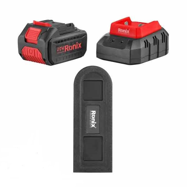 کاور ساطور ، ساطور ، زنجیر ، 2 عدد باتری 4 آمپر ساعت ، 1 عدد شارژر 4آمپر