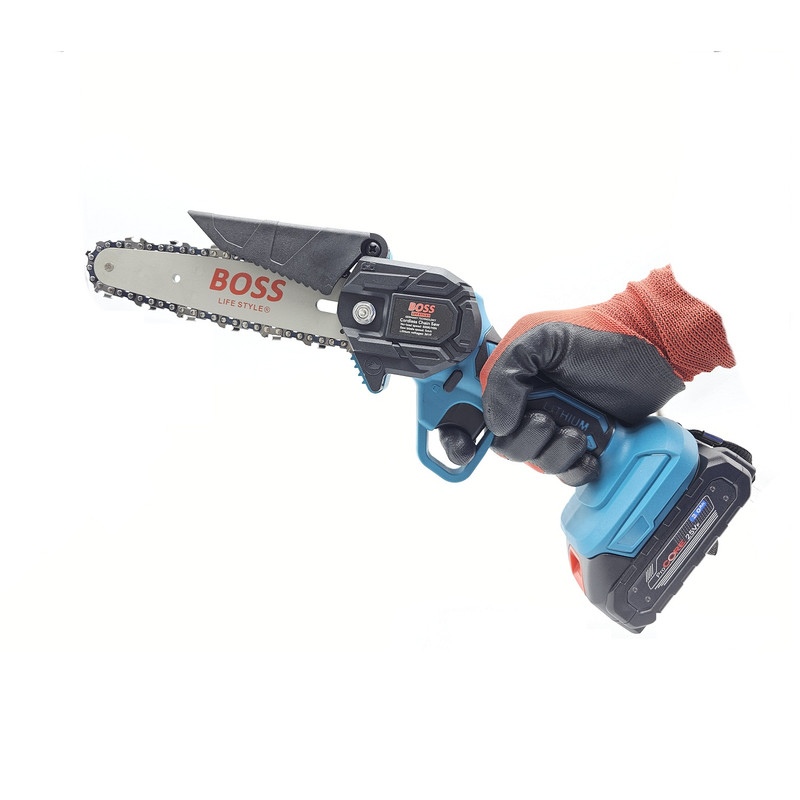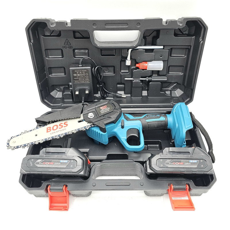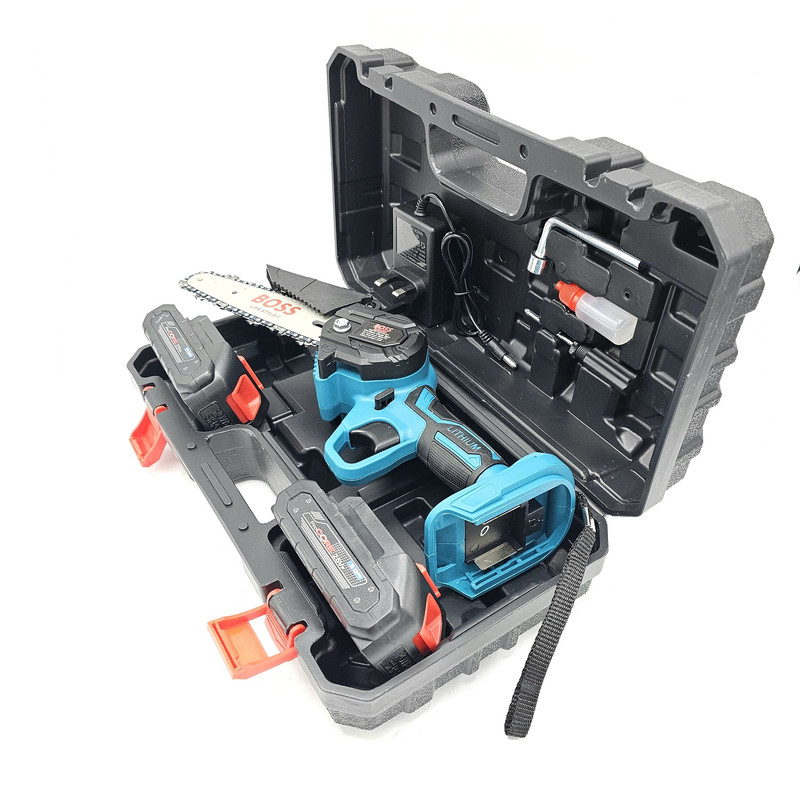 کیف حمل ضد ضربه - یک عدد ساطوری - یک عدد زنجیر - یک عدد محافظ براده - یک عدد شارژر باطری - دو عدد باطری لیتیومی 25 ولتی باس -