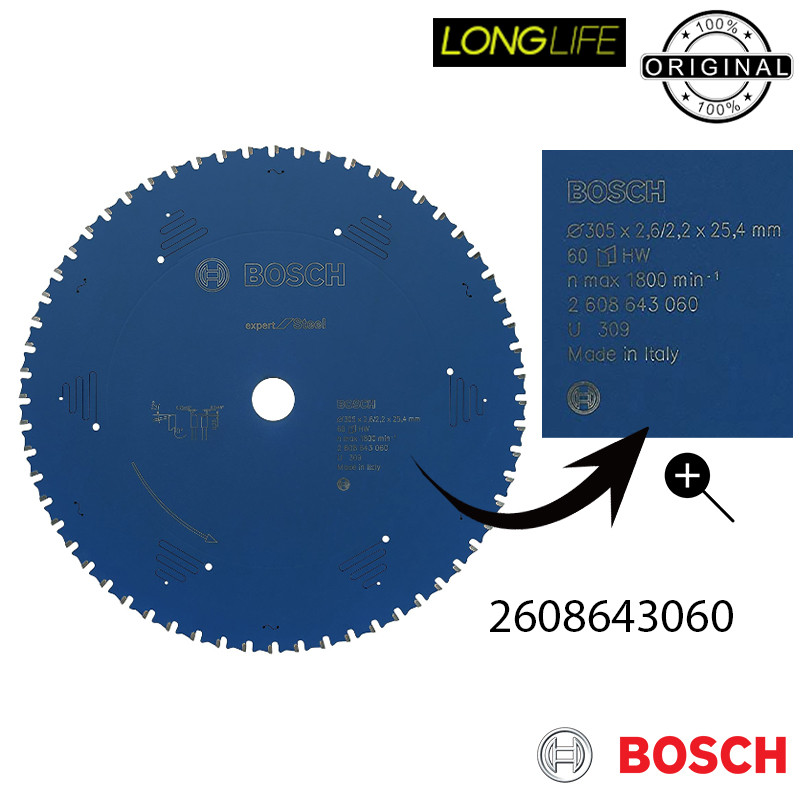 یک عدد تیغ اره الماسه فلز بر 305 میلی متری ساخت ایتالیا به کد فنی 2608643060 (تیغ توسط شرکت بوش روی دستگاه نصب شده)