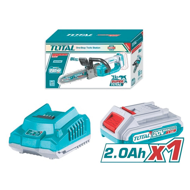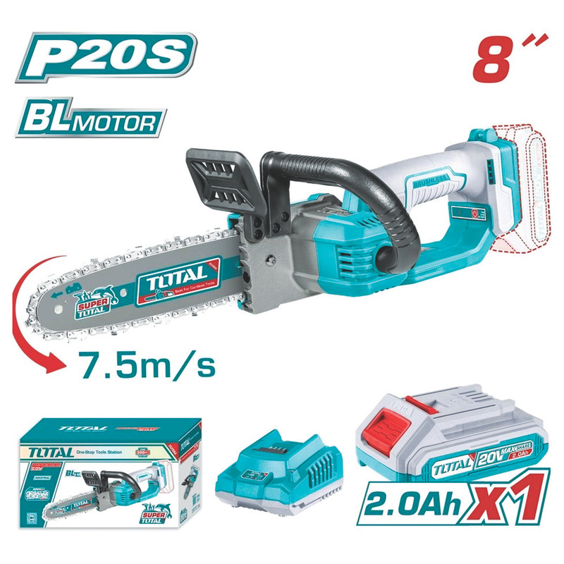 ۱ عدد باتری ۲۰ ولت ۲ آمپر لیتیوم یون ۱ عدد شارژر ۲ آمپر فست شارژ ۱ عدد زنجیر ۸ اینچ ۱ عدد تیغه ۸ اینچ ۱ عدد محافظ تیغه ۱ عدد روغندان و ۱ عدد آچار بازوبست تیغه و دفترچه راهنما