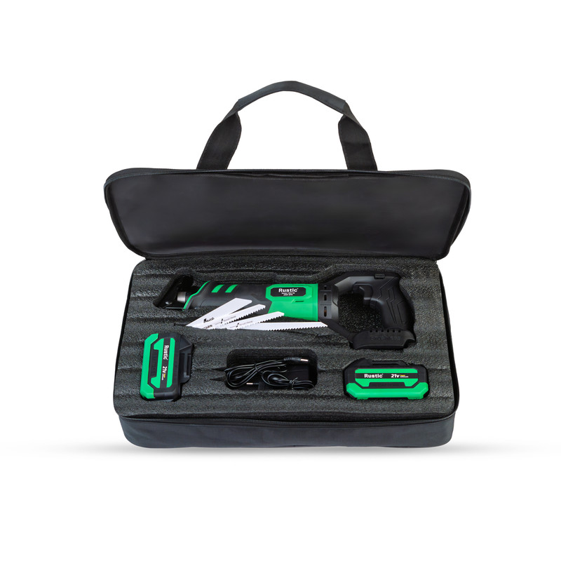 دو عدد باتری با ظرفیت 4000 میلی آمپر - 2 عدد تیغه متال - 2 عدد تیغه چوب - شارژر فست - کیف برزنتی