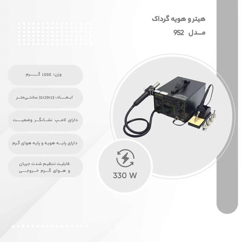دیجیتال , قابلیت تنظیم شدت جریان و هوای گرم خروجی - دارای پایه هویه و پایه هوای گرم
