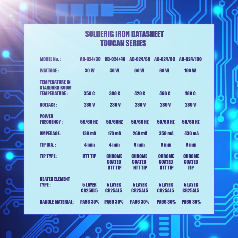 سایر توضیحات: دارای فیوز اضافه جریان برق - نوک لحیم کاری هادی حرارت با روکش کروم - داغ شدن سریع