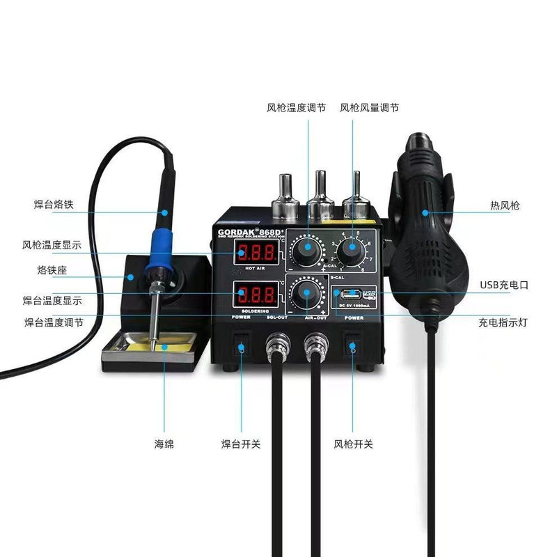 وزن: 3.40 کیلوگرم توان مصرفی: 500 وات محدوده دمایی هویه: 200 تا 480 درجه سانتیگراد محدوده دمایی هیتر: 100 تا 500 درجه سانتیگراد