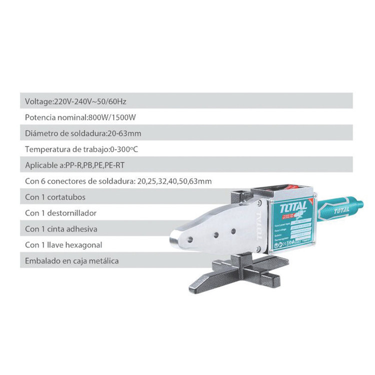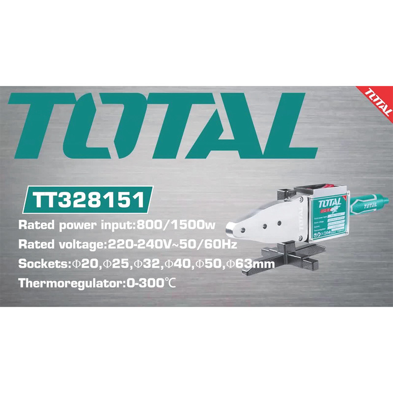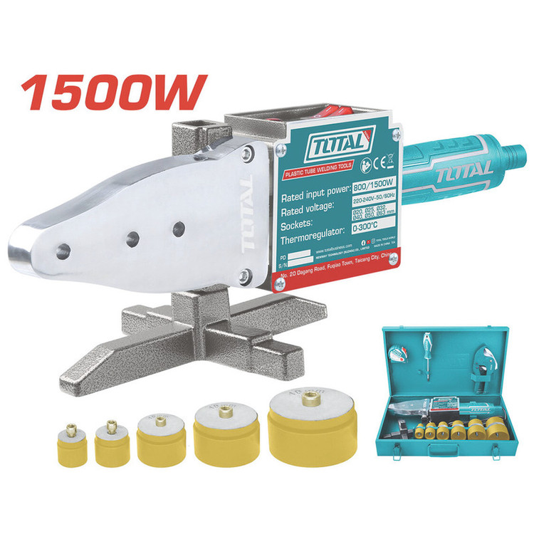 دستگاه اتو لوله 1500 وات توتال مدل TT328151 یک اتو لوله بسیار کار آمد و باکیفیت است و با توان 1500 وات و قابلیت تنظیم دما تا 300 درجه سانتیگراد ، مناسب برای جوش لولههای پلیمری (PE و PP-R) در سایزهای 20 ، 25 ، 32 ، 40 ، 50 ، 63 میلیمتر است و همراه با 6 سری گرم کننده (لقمه های اتو ) ، قیچی لولهبر ، و لوازم جانبی ارائه میشود . توان این محصول از 800 تا 1500 وات قابل تنضیم میباشد . سیستم حرارتی این محصول دارای 2 المنت مجزا است برای گرمایش سریع و یکنواخت ، همچنین این محصول دارای ترموستات تنظیم دما با قابلیت کنترل دقیق عایق حرارتی برای جلوگیری از اتلاف انرژی میباشد . این محصول دارای راکت بزرگ آلومینیومی برای توزیع یکنواخت گرما و دسته ضد حرارت از جنس پلی آمید به همراه کابل نسوز مقاوم در برابر حرارت میباشد اقلام همراه اتو لوله 1500 وات توتال مدل TT328151 شامل (6 عدد سری گرم کننده (20، 25، 32، 40، 50، 63 میلیمتر ، 1 عدد قیچی لولهبر ، 1 عدد آچار آلن برای تعویض سریها ، 1 عدد پیچگوشتی ، 1 عدد متر نواری 3 متری ، به همراه کیف فلزی برای حمل و نگهداری ) میباشد . توتال یک برند و کمپانی جهانی میباشد که دارای استاندارد CE اروپا است و محصولات خود را تحت لیسانس در کشور چین تولید میکند و به کیفیت بالا و مهندسی شده محصولات خود معروف میباشد که این اتو لوله هم از قاعده مستثنا نیست برای اطلاعات بیشتر به ابزار باطن مراجعه کنید اگر شما به دنبال خرد یک اتو لوله فق العاده پر قدرت و با کیفیت هستید پیشنهاد تیم کارشناسان فنی ابزار باطن به شما اتو لوله توتال میباشد