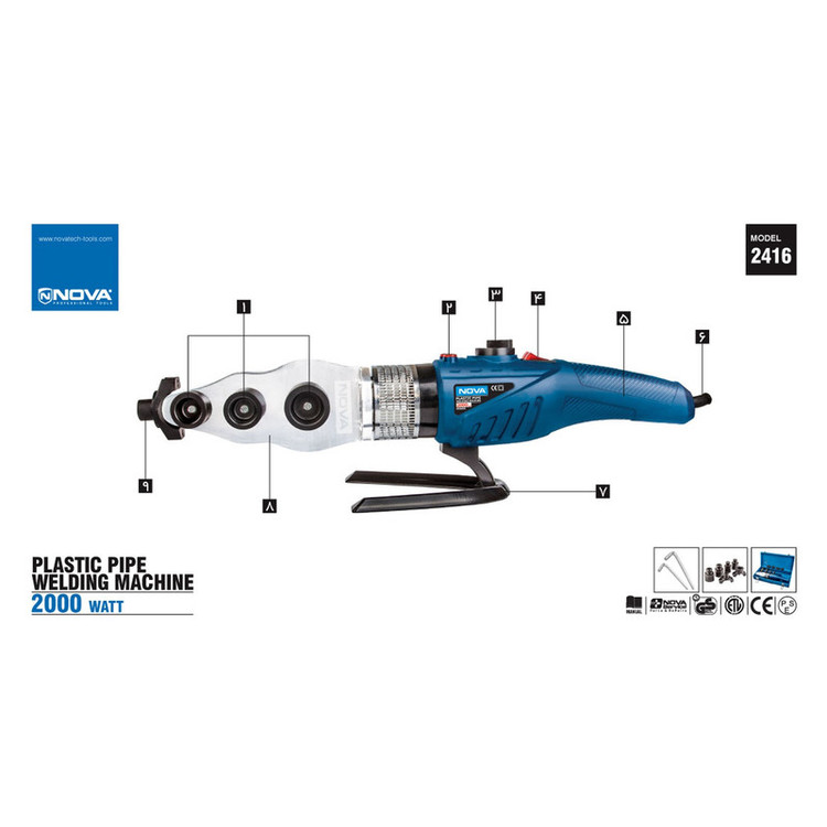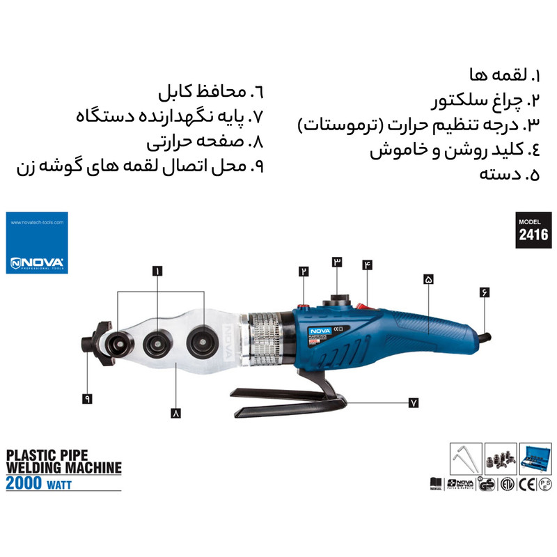 - 4 عدد لقمه 20 میلیمتری ( دو سری ) و 25 میلیمتری ( دو سری ) - 2 عدد لقمه سر صفحه حرارتی 20 و 25 میلیمتری با طراحی ویژه - 2 عدد آچار آلن - کیف فلزی - پایه آلومینیومی