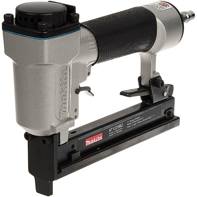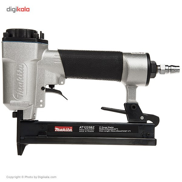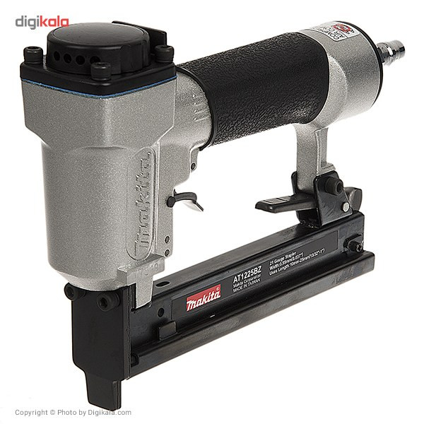 منگنهکوب بادی مدل AT1225BZ دستگاهی است که با استفاده از فشار باد سوزن یا منگنه را به محل موردنظر پرتاب میکند. این دستگاه از قدرت بسیار بالایی بهره میبرد. نام تولیدکنندهی این محصول، شرکت «ماکیتا» (Makita) است. با این دستگاه میتوانید طولهای مختلفی از منگنه را پرتاب کنید. این محصول با طول 25 سانتیمتر تولید میشود. در نظر داشته باشید که برای استفاده از این مدل، باید از یک منبع تولیدکنندهی هوای پرفشار استفاده کرده و با استفاده از شلنگ مخصوص منبع را به منگنهکوب متصل کنید. اتصالات باید کاملا محکم باشند تا خطری متوجه کاربر نشود. حداقل فشار موردنیاز برای عملکرد این محصول 60 PSI یا 4 بار است. وزن این دستگاه بدون در نظر گرفتن اتصالات آن 1.3 کیلوگرم است. مدل AT1225BZ، دارای خشاب یا محل قرارگیری منگنه است که میتوانید تعداد 100 عدد منگنه (سوزن) از طول 10 تا 25 میلیمتر را در آن قرار دهید. لازم به ذکر است که شکل منگنههایی که در این دستگاه قرار میگیرد، بهصورت سوزنهای ضخیم به هم چسبیده است. برای استفاده راحتتر و بهینهتر، بهتر است هر از چند گاهی قسمت پرتاب منگنه را روغنکاری کنید.