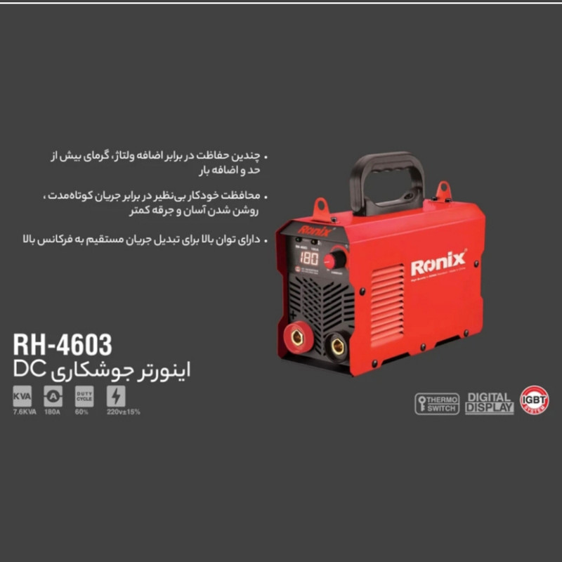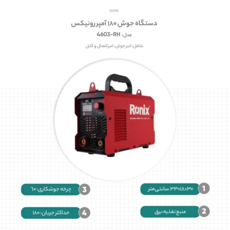 نوعصنعتیابعاد33x18x30 سانتیمتروزن2 کیلوگرمانبرداردچرخه جوشکاری60حداکثر جریان180منبع تغذیهبرقجنس کابلمس
