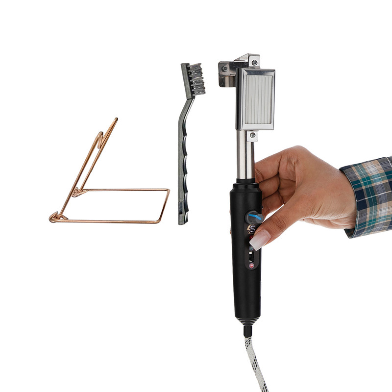 همراه این دستگاه پایه مسی تاشو و برس تمیز کننده قرار دارد.
