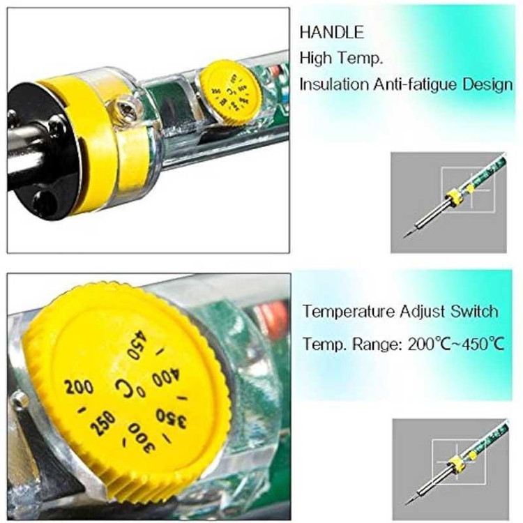 هویه دستی تعمیرات موبایل مخصوص لحیم کاری بردهای الکترونیک قابلیت تنظیم دما محدوده دمایی 200 تا 450 درجه سانتیگراد توان مصرفی 60 وات طول سیم 24 سانتیمتر