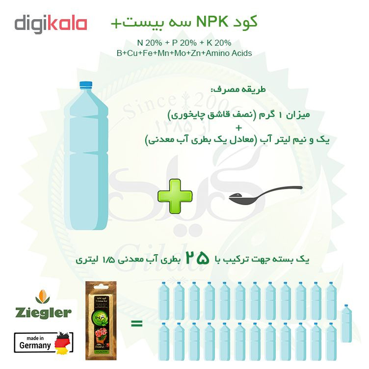 کود کامل NPK سه بیست گیلدا کد 20-20-20 وزن 25 گرم