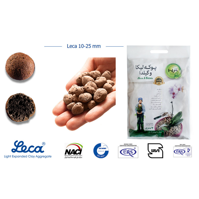 محصولی که در تصویر مشاهده میکنید «پوکه لیکا و گیلدا» است که توسط «گیلدا» (Gilda) عرضه میگردد. این محصول فواید زیادی داشته و کمک زیادی به رشد گیاهان میکند. لیکا از مواد معدنی تشکیل میشود.