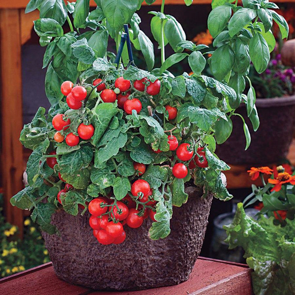 این نوع گوجه بسیار پر بار بوده و چون پاکوتاه هست مخصوص کاشت در گلدان است یعنی در فضا های کوچک به راحتی میتوانید آن را پرورش بدهید. توجه داشته باشید که بوته های گوجه نیاز به نور مستقیم خورشید دارند و در منزل قابل نگهداری نیست و اگر نور کافی نداشته باشد ساقه های آن دراز میشود. ولی باردهی خود را انجام میدهد