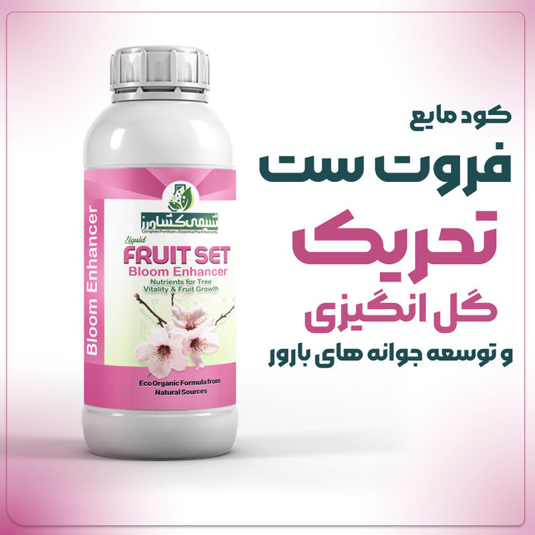 فروت ست W/V نیتروژن ۷ درصد فسفر محلول ۲ درصد پتاسیم محلول ۳ درصد بور ۲ درصد روی ۵ درصد مس ۰/۵ درصد آهن ۲ درصد مولیبدن ۰/۰۰۲ درصد آمنیو اسید ۱۰ درصد ماده آلی ۴ درصد