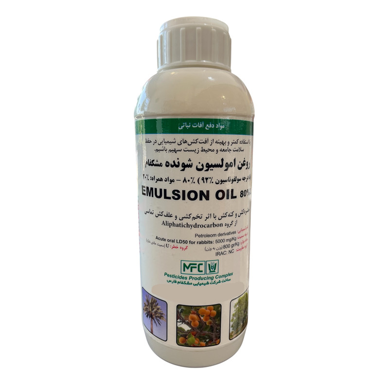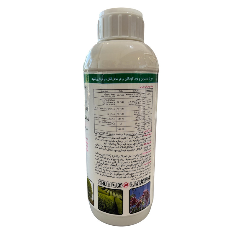درجه سولفوناسیون حداقل ۹۲% نام عمومی Petrolium oils ترکیبات ۸۰ درصد پارافین با بهترین کیفیت، ضد قارچ، امولسیفایر و غلظت دهنده برای مبارزه با کنه قرمز و کنه نقره ای بسته به زمان مصرف دوز ۷تا ۲۰لیتر در هزار توصیه می گردد