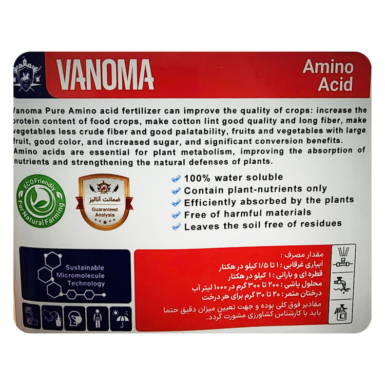 آمینو اسید چپ گرد 50% نیتروژن 8% کربن 20%