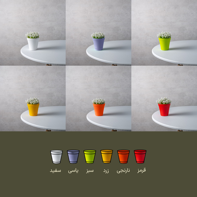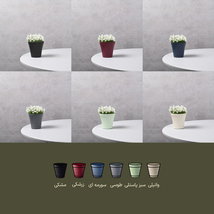 مقاومت عالی در برابر نور خورشید و اشعه UV سیستم زهکشی استاندارد زیر گلدان هماهنگ دوام بالا در برابر ضربه و شرایط محیطی بعاد و فرم مناسب برای گیاهان آپارتمانی و زینتی