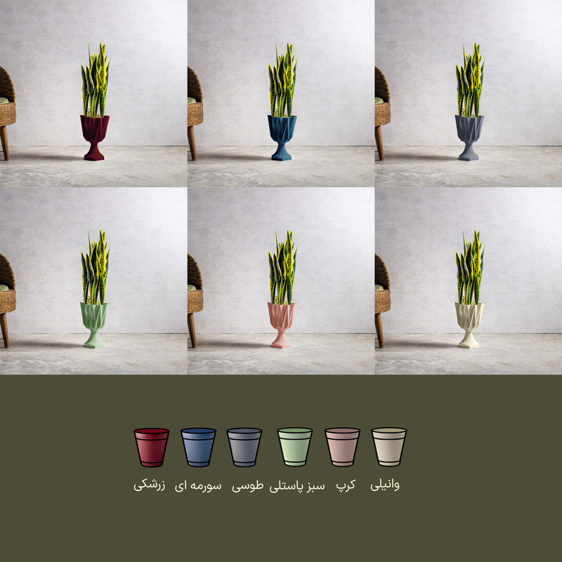 مقاومت عالی در برابر نور خورشید و اشعه UV سیستم زهکشی استاندارد زیر گلدان هماهنگ بافت برلیانی و جلوهی درخشان دوام بالا در برابر ضربه و شرایط محیطی مناسب برای گیاهان زینتی و آپارتمانی