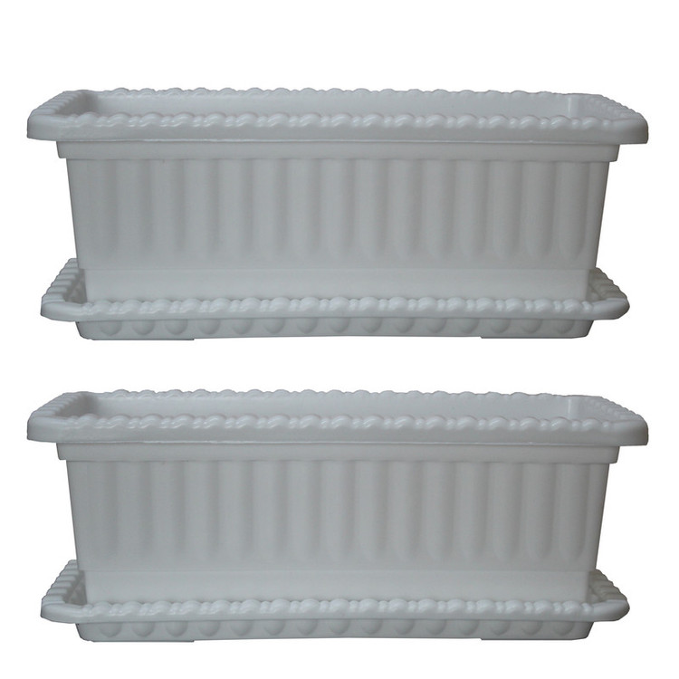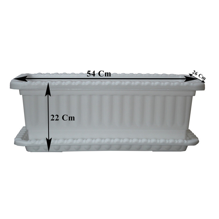 این مجموعه شامل 2 گلدان مستطیلی به همراه زیرگلدانی است. اندازه گلدانها: 54x26x22 سانت، دارای بدنه بادوام
