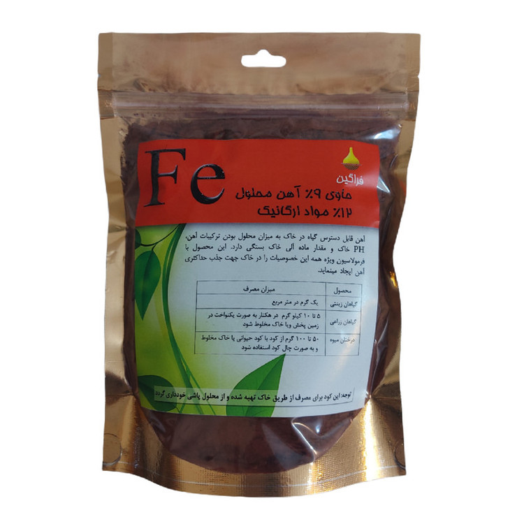 آهن کل 22% آهن محلول 9% مواد ارگانیک 12% روی 0.5% منیزیم 0.5% پتاسیم محلول 1.1%