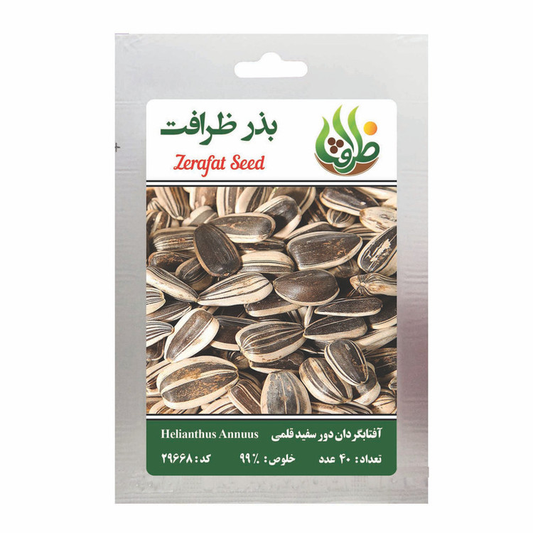 حاوی 40 عدد بذر آفتابگردان دور سفید قلمی بسته بندی مناسب (مقاوم در برابر نور و رطوبت) مقرون به صرفه درصد جوانه زنی بالا