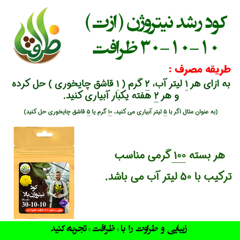 کود نیتروژن بالا NPK 30-10-10 + TE ظرافت مدل KO2767 وزن 100 گرم