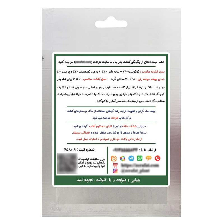 جمعا حاوی 6500 عدد بذر تره بسته بندی مناسب (مقاوم در برابر نور و رطوبت) مقرون به صرفه درصد جوانه زنی بالا