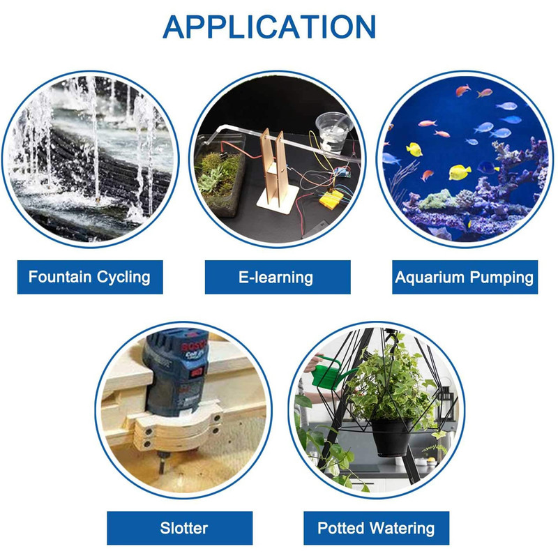 پمپ آب 3 ولت افقی دارای فلو 100 لیتر بر ساعت می باشد و قابلیت استفاده در مدارات کنترل رطوبت خاک و آبیاری گیاهان، خنک کننده اتوماتیک تیغه دستگاه های برش و غیره را دارد.