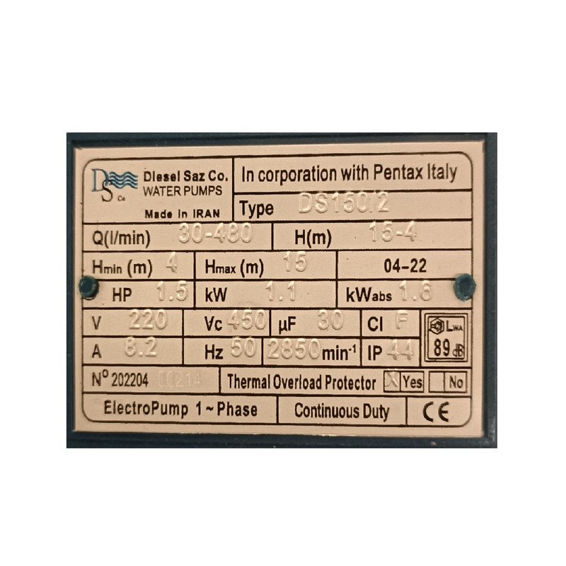 پایه چدنی , تکفاز , دارای خازن روکار , دارای محافظ حرارتی , شفت استیلی