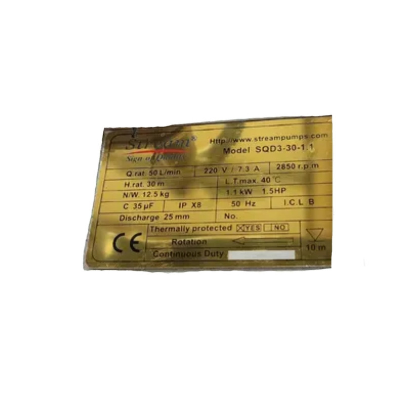 پوسته آلومینیومی , تکفاز , دارای خازن توکار , شفت استیلی , قابلیت غوطهور شدن