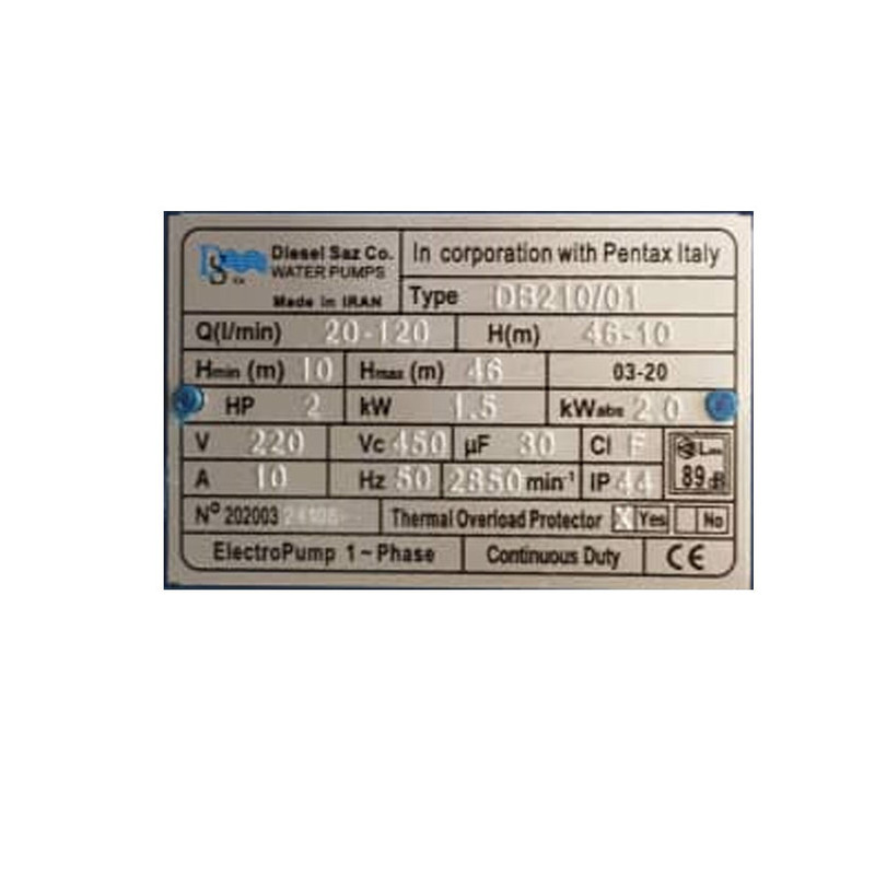 پمپ آب دیزل ساز مدل Db210/01