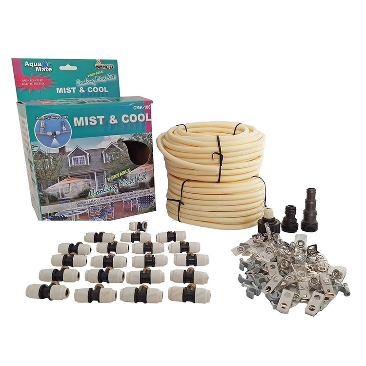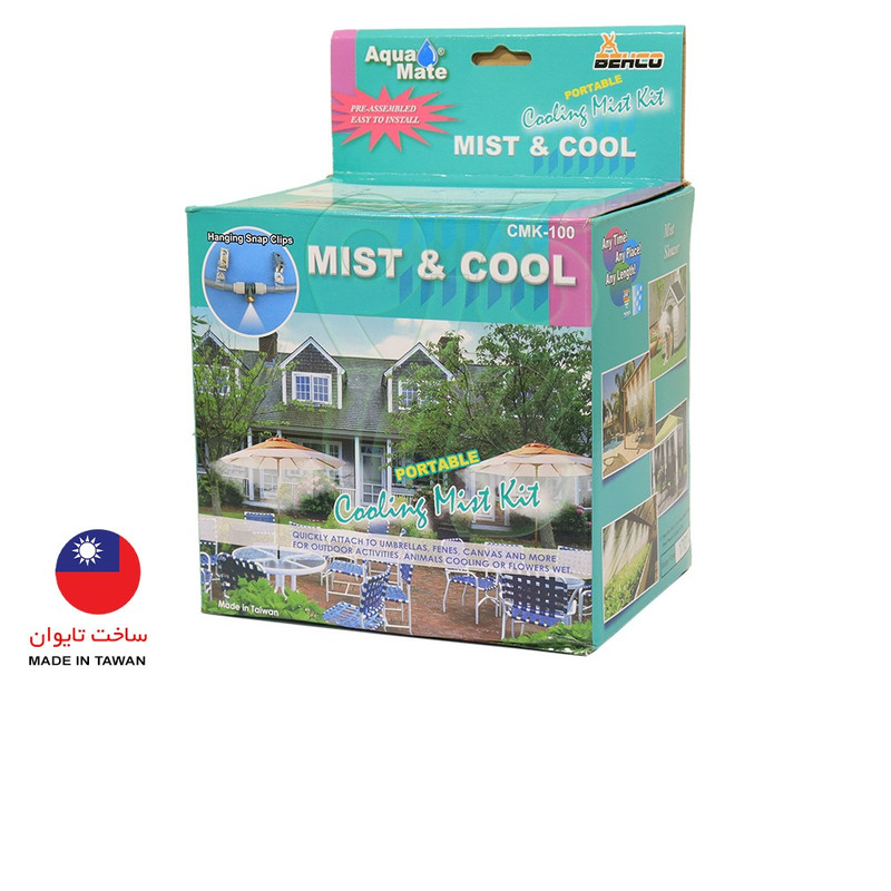 - دارای رابط و فیلتر توری اتصال شیر - دارای 20 عدد نازل مه پاش - دارای20 گیره ی نگهدارنده - دارای دو رول لوله 15 متری - دارای 20 بست میخی
