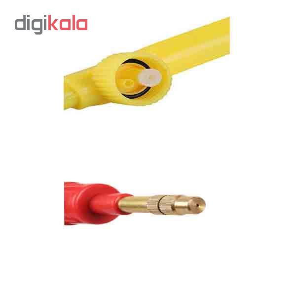 سمپاش تلمبه ای یا همان سمپاش نوشابه ای یا آب پاش تلمبه ای دارای 2 حالت مکانیزم آب دهی میباشد (قابلیت تعویض مدل خروج آب با تنظیم نازل تنظیم کننده حالت پاشیدن). بدنه این سمپاش از مواد پلاستیکی درجه 1 ساخته شده است این آبپاش با دنده های استاندارد قابلیت نصب روی بطری های نوشابه و آب معدنی (با دنده استاندارد) را دارا می باشد. برای کار با این محصول باید ابتدا شلنگ را به قطعه اصلی نصب نمایید (در صورت استفاده از بطری کوچک، شلنگ را متناسب با ان کوتاه کنید.) سپس بطری را تا نیمه از مایع پر کرده و محلول پاش را بر روی آن نصب کنید، تلمبه را حدود 10 بار پمپ نموده و با فشردن دکمه اسپری از آن استفاده نمایدد. لازم بذکر است که با چرخاندن پیچ نازل می توانید مایع را به صورت پودر و مستقیم اسپری کنید و یا به صورت سوزنی با برد بالا و فشار بالا استفاده نمایید. این سمپاش نیاز به سفت نمودن زیادی نداشته، چراکه خود اورینگ تعبیه شده درون محل اتصال، سمپاش را به خوبی آب بندی می نماید. این محصول دارای استحکام و دوام بالا بوده و برای آبیاری جهت صرفه جویی و مصرف آب کمتر مناسب می باشد. علاوه بر این با توجه به قابلیت پودرسازی بالا می توان از آن برای سمپاشی، پاشیدن محلول شیشه پاک کن و آب پاشی قبل از اتوکشی استفاده نمود. مزیت این سمپاش نسبت به سمپاش های معمول در کاهش چکه، فشار نیاوردن به مچ دست و قابلیت استفاده برای حجم زیادی از مایع است. بطور کلی مزایای این سمپاش عبارتست از: قابلیت نصب روی بطری های نوشابه با دنده استاندارد قابلیت اسپری آب ، سم، گلاب و محلول های شستشو قابل استفاده در منازل، باغ، و مجالس مذهبی دارای برد مناسب قابلیت تنظیم پاشش با پیچاندن نازل سر آبپاش کیفیت بالای ساخت استحکام و دوام بالا برخلاف ابپاش های معمول، چکه نمی کند