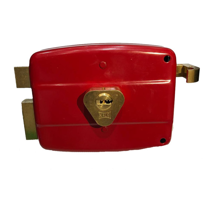 قفل درب حیاطی دارای توپی داخلی برنجی و توپی خارجی نیز برنجی به همراه مقابلی و دارای پیچ و دارای پنج عدد کلید کامپیوتری درجه یک ، ساخت کشور ترکیه برند کال