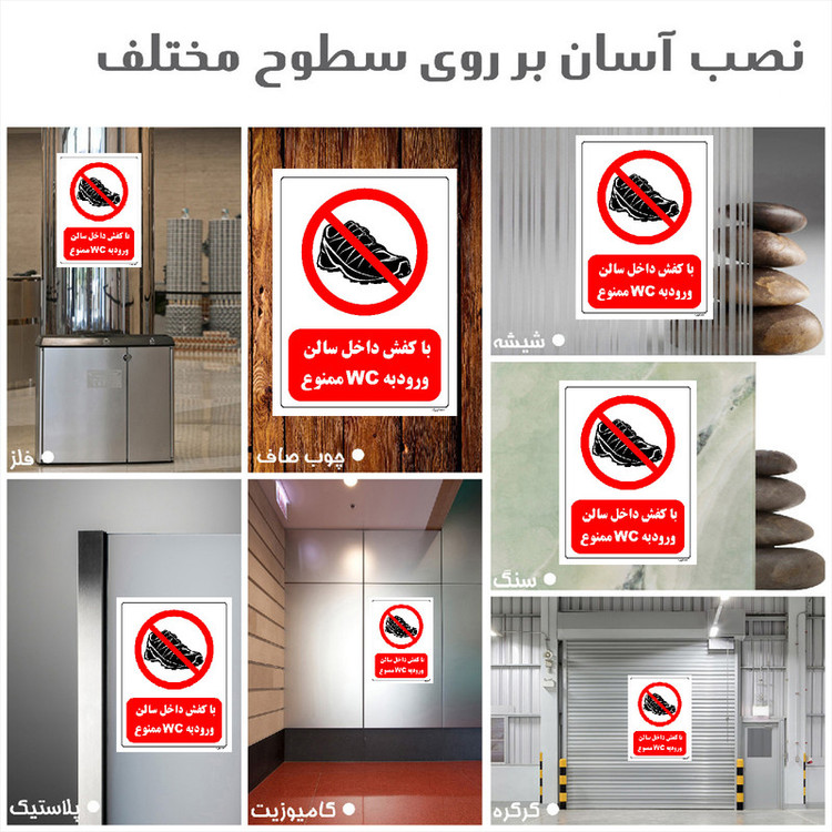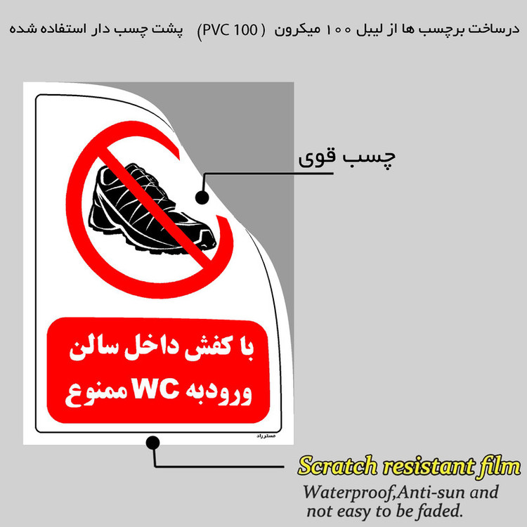 برچسب ایمنی مستر راد طرح با کفش داخل سالن ورود به WC ممنوع مدل HSE-OSHA-0147