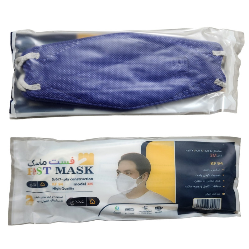 رنگ محصول آبی کاربنی تیره بسته بندی سلفونی طرح دار شرکت فست ماسک شش لایه نانو کش پهن و نرم