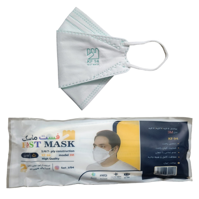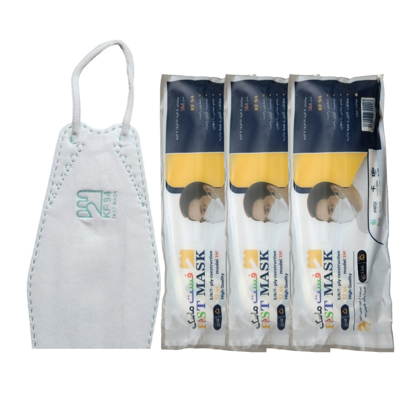 ماسک فست که به دلیل شکل ظاهری اش با نام ماسک سه بعدی نیز خوانده می شود یکی از ماسکهای حرفه ای در نوع خودش به شمار می رود. این ماسک نسبت به ماسکهای مشابه خودش در همین زمینه کیفیت بسیار بهتری دارد. تنها تفاوت این ماسک ظاهر زیبای آن نیست. بلکه لایه های حرفه ای تر باعث شده که این محصول بسیار بیشتر مورد توجه قرار داشته باشد. برای ساخت این ماسک به جای 3 لایه از 6 لایه استفاده شده است ( 4 لایه ملت بلون 25 گرم مرغوب و 2 لایه از جنس اسپان باندضخیم نرم و لطیف ضد حساسیت پوستی و تنفسی ) .لایه های سطحی تر از جنس اسپان باند و سه لایه میانی از جنس ملت بلون هستند. استفاده از سه لایه ملت بلون باعث شده کارایی این ماسکها دو چندان شود. میزان فیلتراسیون ماسک فست به دلیل استفاده از ملت بلون بیشتر بسیار افزایش یافته است. این ماسکها که قدری نیز جدید هستند با نام های دیگری چون ماسک سه پنله نیز در بازار خوانده می شوند. همچنین هنگامی که این ماسک ها بسته هستند، به دلیل تشابه به ظاهر ماهی، نام فیش ماسک یا ماسک ماهی هم گرفته اند. ماسک سه بعدی فست یا Fast Mask Kf94 استانداردهای موفق زیادی دارد. مواردی که باعث شده به ماسکی قابل توجه برای شرایط بیماری زای خطرناک بدل شود. این ماسک جالب با ظاهری خاص توانسته در موج های شدید کرونایی جلوی ابتلا را برای افرادی که از آن استفاده کرده اند تا حد زیادی بگیرد. محصولی ویژه که هم از نظر ظاهری و هم از کیفی توانسته مورد توجه قرار بگیرد. حتی افرادی که ماسکی با زیبایی ظاهری و رنگی خاص می خواهند می توانند به سراغ این محصول بروند. ماسکی که پیش تر از کرونا نیز بوده است. اما هیچ وقت مانند زمان کرونا فروش نداشته است. دلیلش هم مشخص است. هیچ وقت شرایط بیماری زای خطرناک به شدت کرونا نبوده است. رنگ محصول سفید با لایه آستر داخلی رنگی به یکی از رنگ های ( سفید - مشکی - سبز - آبی - طوسی - کرم ) می باشد .