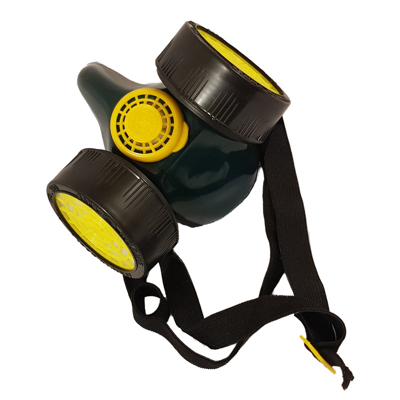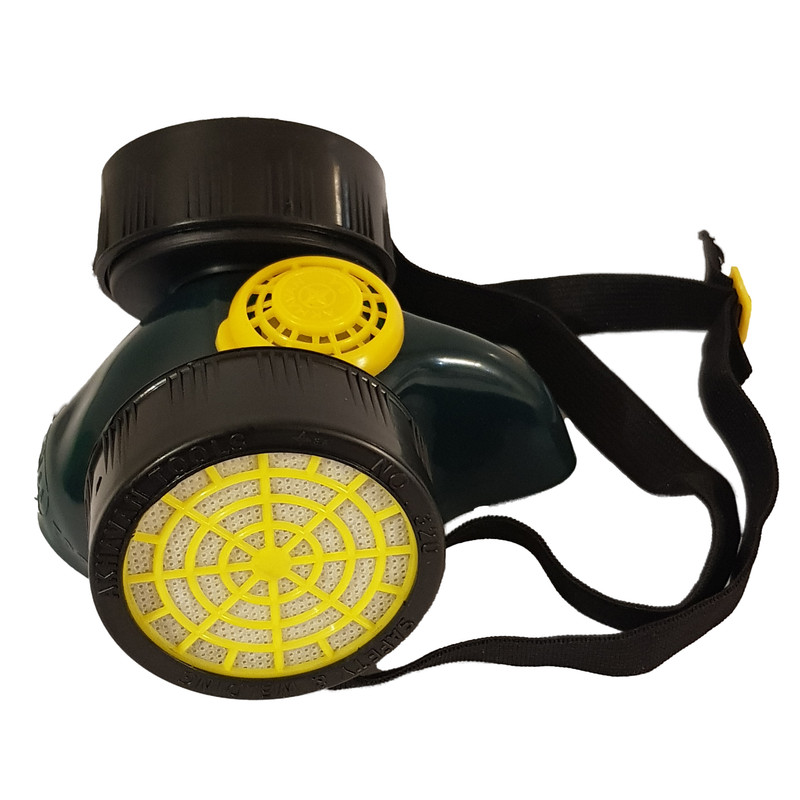 این ماسک دارای 2 فیلتر قابل تعویض و کش تنظیم دور سر میباشد.جهت جلوگیری از ورود هرگونه آلایندگی محیط به داخل ریه ها میباشد.