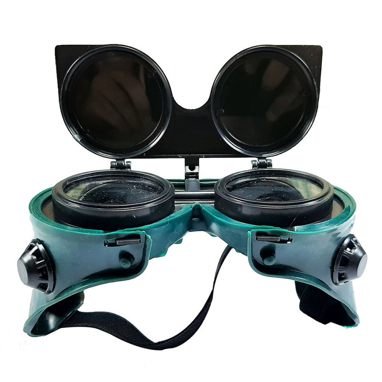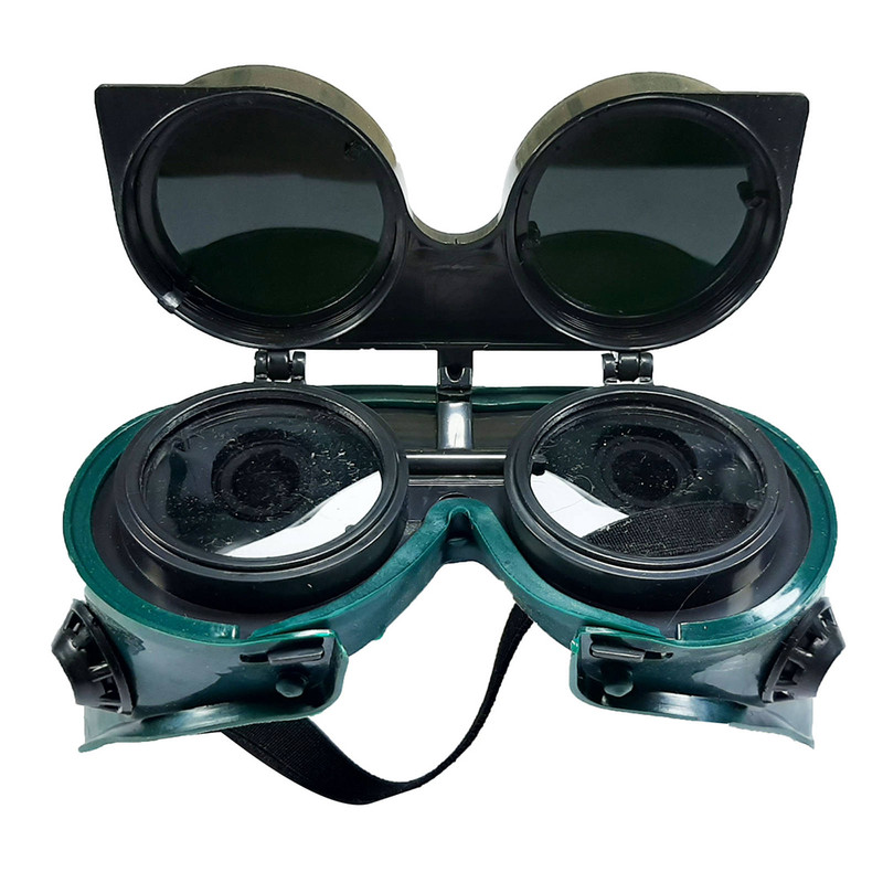 دارای 4 عدد سوپاپ تهویه در طرفین عینک دارای فیلتر دودی رنگ و متحرک ساخته شده از جنس پلاستیک PVC نگهدارنده سبز رنگ لنز از جنس ABS دارای لنز گرد بازشو شماره 5 قابلیت استفاده از لنز شفاف برای فعالیت های صنعتی دیگر