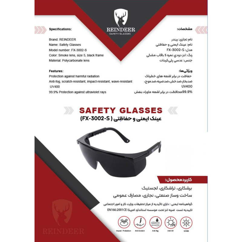 عینک ایمنی ریندر مدل FX-3002-S