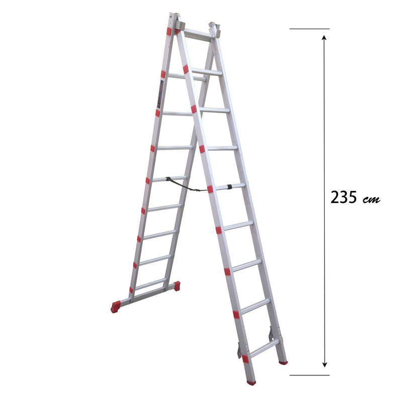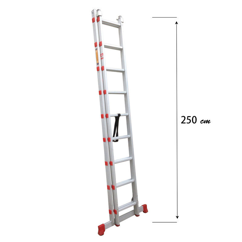 نردبان 5 متری دولنگه دوطرفه کشویی (مخابراتی). وزن قابل تحمل نردبان 150 کیلوگرم و مجاز 130 کیلوگرم ، قابل تبدیل به سه حالت مختلف، شامل دو لنگه 2.5 متری مجزا ، ارتفاع در حالت باز شده کامل هر دو لنگه به صورت کشویی 4.25 متر ، در حالت دو طرفه 2.35 متر ، در حالت بسته 2.5 متر می باشد. در ساخت این نردبان از پروفیل های مستحکم اکسترود شده و بدون خط اتصال از جنس آلیاژ مخصوص آلومینیوم استفاده شده است و نفوذ عمیق پله ها در پروفیل های جانبی و پرس محکم انتهای پله ها موجب اتصال امن آنها گردیده است و به علت نوع آلیاژ استفاده شده، موجب استحکام بالا و وزن کم نردبان گردیده است. ، قابلیت بالای حفظ تعادل به علت استفاده از پایه پهن و لاستیک های مخصوص ضد لغزش در پایه های نردبان و کمربند ایمنی و سطح مقطع مربع شکل موجب استحکام بیشتر پـله ها و ایمنی بالا شده و همچنین راحتی هر چه بیشتر را برای کاربران محترم تامین کرده است. ، شاید در نگاه اول نردبان به صورت یک ابزار ساده به نظر برسد ولی یکی از پر اهمیت ترین نکاتش تامین امنیت و راحتی کاربر می باشد که به حول قوه الهی نزدیک به نیم قرن تامین کننده صد در صد امنیت و ایمنی کاربرانمان بوده ایم و هستیم. ، به دلیل کیفیت بالای آلیاژ به کار رفته در پروفیل ها، از رنگ کردن محصولات اجتناب می کنیم و به ندرت احتمال وجود خط و خش جزئی بر روی محصولات می باشد، ولی در صورت درخواست متقاضی به صورت سفارشی انجام می گیرد. ، صنایع آلوپات نخستین تولید کننده ایرانی است که نردبان و بالابرهایی با کیفیت برتر در انواع صنعتی و خانگی و فوق مستحکم نیروگاهی و آتش نشانی و مخابراتی را با استانداردهای پذیرفته شده بین المللی را طراحی و تولید کرده است و دارای استاندارد ایران و ISO 9001:2015 در سیستم مدیریت کیفیت، صادره از رویال سرت ( Royal Cert ) آلمان می باشد و محصولات این شرکت با رعایت آخرین استانداردهای بین المللی در این زمینه تولید می گردد.