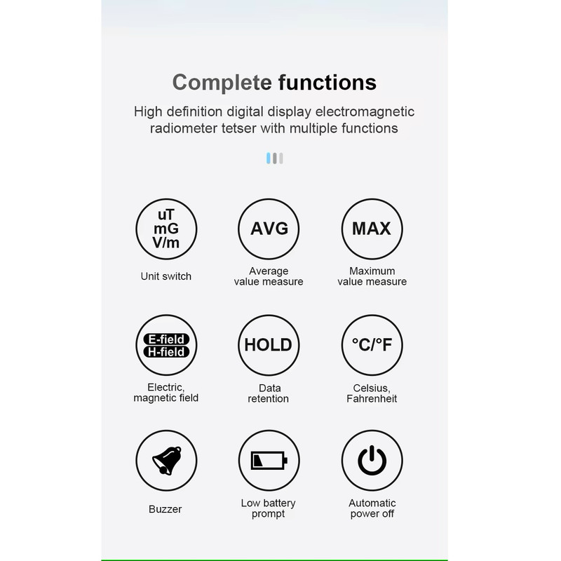 V/m:0~9999/uT:0~74/mG:0~740 میلیمتر