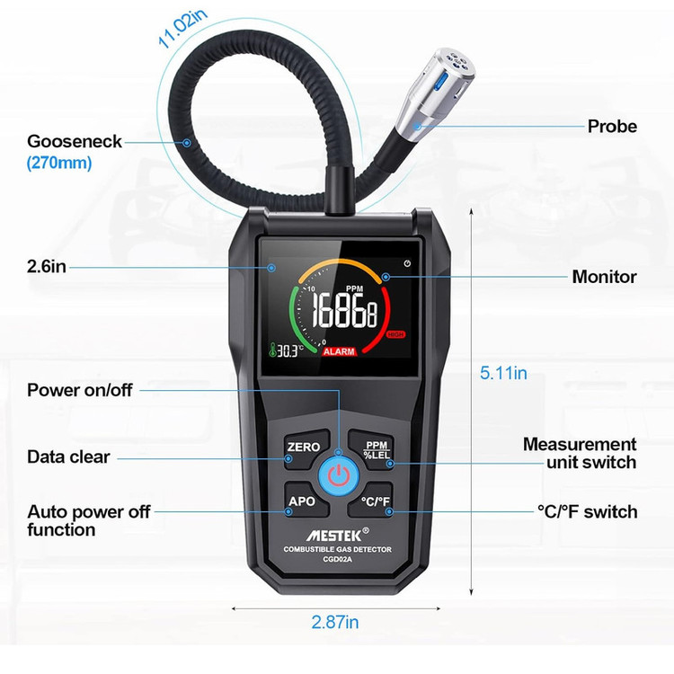 دامنه اندازهگیری: 0-100%LEL/0-50000 PPM میلیمتر